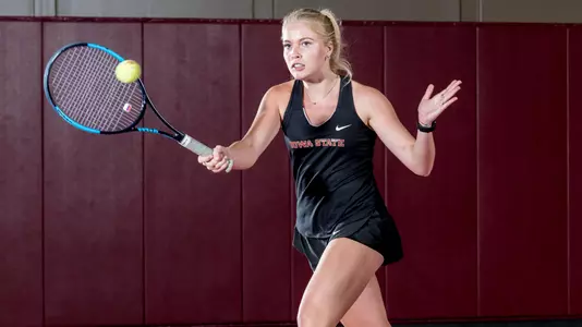 Annabella Bonadonna clinched the match for Iowa State in the No. 5 singles spot, winning 6-4, 6-2 against Anastasia Bovolskaia.